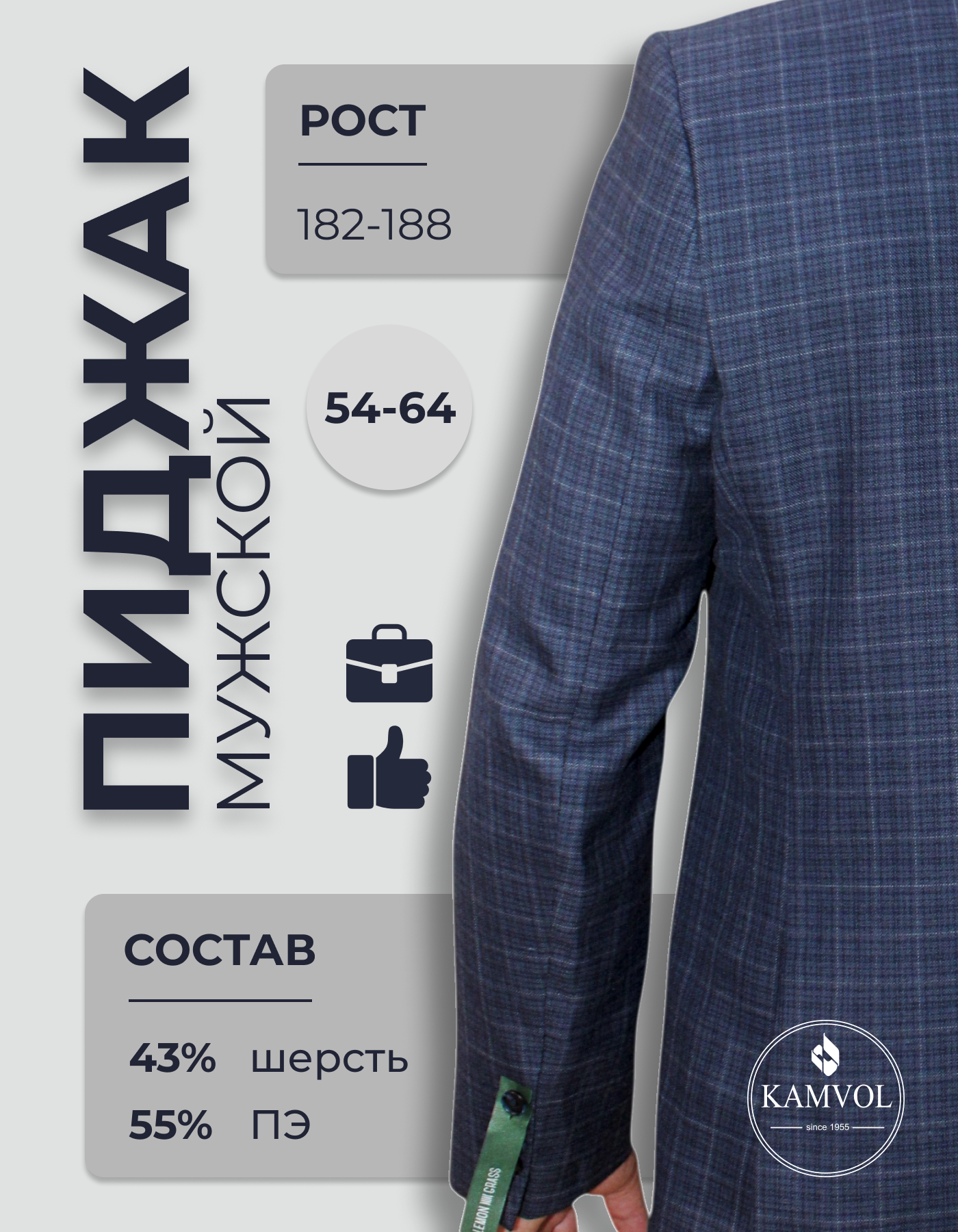 Ткань верха : 43% шерсть, 55% пэ, 2% лайкра