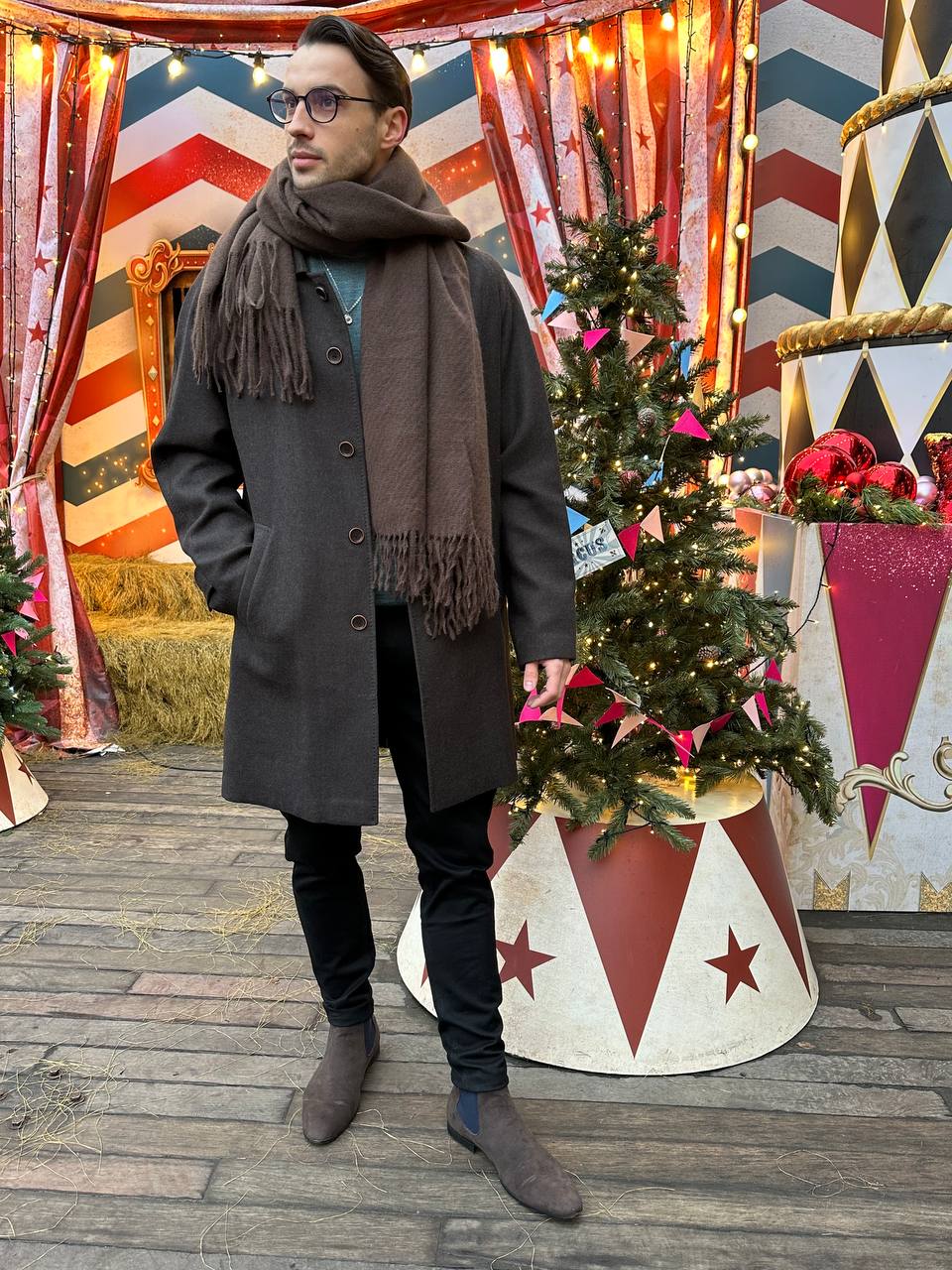 Шерстяное мужское пальто классического прямого кроя. Актуальный силуэт с отложным воротником. Длина средняя универсальная. Цвет - серый.